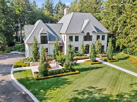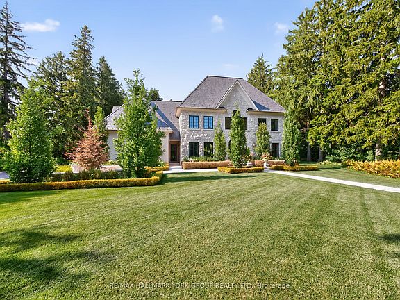 An Iconic Estate on Prestigious Kennedy Street West. Set on 1.18 private acres in the heart of Old Aurora, this one-of-a-kind residence embodies refined elegance and modern glamour. Behind its timeless façade, interiors are curated with a designers eye, wide-plank custom elm hardwoods, exquisite chandeliers, and architectural ceiling heights that flood the home with natural light. At the centre, the show-stopping Cameo Kitchen blends luxury and function with bespoke cabinetry, professional-grade appliances, and statement finishes worthy of a magazine spread. Formal and casual spaces alike are anchored by multiple fireplaces, creating warmth and sophistication throughout. The upper level boasts four bedrooms, highlighted by a lavish primary suite with a custom walk-in dressing room and spa-inspired ensuite retreat. On the lower level, two additional bedrooms, a dramatic stone fireplace, a wet bar designed as a secondary kitchen, and a private gym extend the homes lifestyle experience. Outdoors, the grounds transform into a resort-worthy escape: a glistening pool framed by multiple terraces, a designer outdoor kitchen, a custom designed cabana with retractable doors for seamless indoor-outdoor entertaining, floor to ceiling stone fireplace, 2 pc ensuite, wet bar and a stand-alone sauna that elevates relaxation to art form. A four-car garage with handcrafted wood doors, lead in to from a custom mudroom with walnut floor to ceiling cabinetry, completes this rare offering. This is more than a home, it is a statement of prestige, privacy, and unparalleled design in one of Auroras most coveted enclaves.