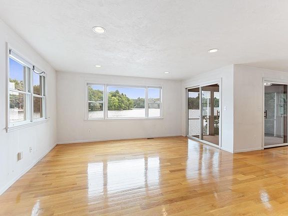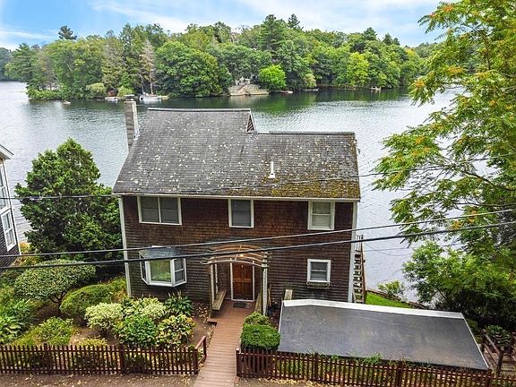 Here's a great opportunity to live in Wayland and waterfront on Dudley Pond in a detached townhouse. Magnificent open views of the pond and lush greenery across the way. Some TLC will bring this home back to life. Living room, sitting area and dining area all with hardwood floors. Two sets of slider doors onto the screened porch to enjoy the views. Wait til you see the Tiffany-like blue kitchen cabinets and a full bath with shower on the first level. Second level with three bedrooms, MB with walk-in closet, laundry area and another full bath with tub. Attic space for storage. Full basement that walks out to yard with large shed for all your outdoor necessities. Off-street parking for 2 cars. Passing title V. First showing at open house, Sat/Sun Aug. 29/30 11:30-1pm
