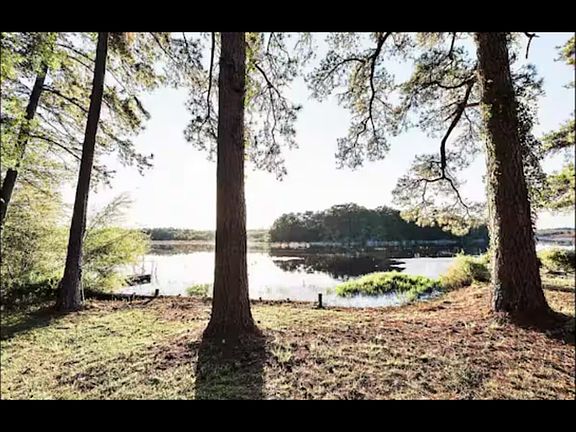 Cabin is nestled peacefully in the woods on Lake Dogwood for ease of fishing and beautiful sights.