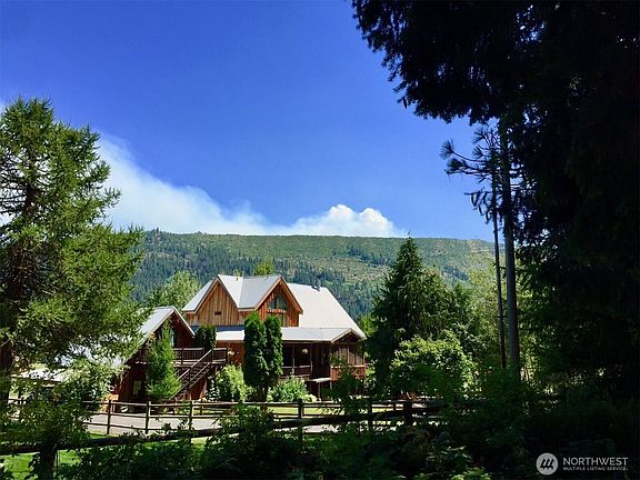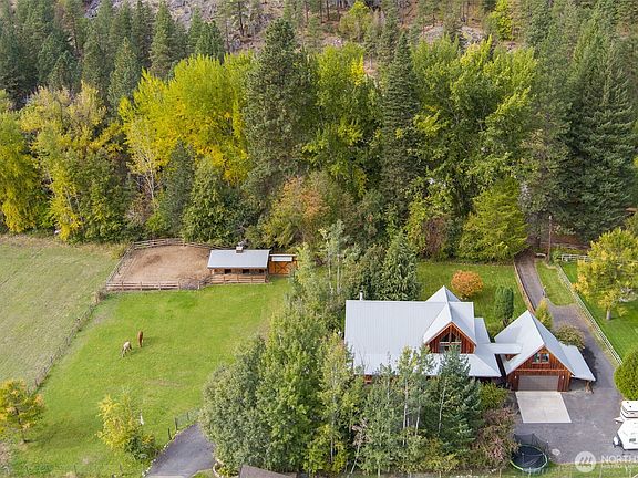 Tucked in a private cul-de-sac at the base of the 2000’ Icicle Ridge, this mountain lodge offers stunning views of Wedge Mnt. and the Enchantments. The property includes Wedge Mountain Suite—a fully equipped guest house with private driveway, currently operating as a vacation rental which allows for strong supplemental income. Walk or ride your horses to Icicle river trail system at the Fish hatchery or stop in at the Sleeping Lady Resort for dining at Kingfisher, O’Grady’s, and The Grotto. Two groomed cross-country ski parks are close by as well. Minutes from Village of Leavenworth yet secluded for peaceful, starry nights, the one-acre property has an equestrian pasture with stables and a spacious yard. Rental figures availble upon request