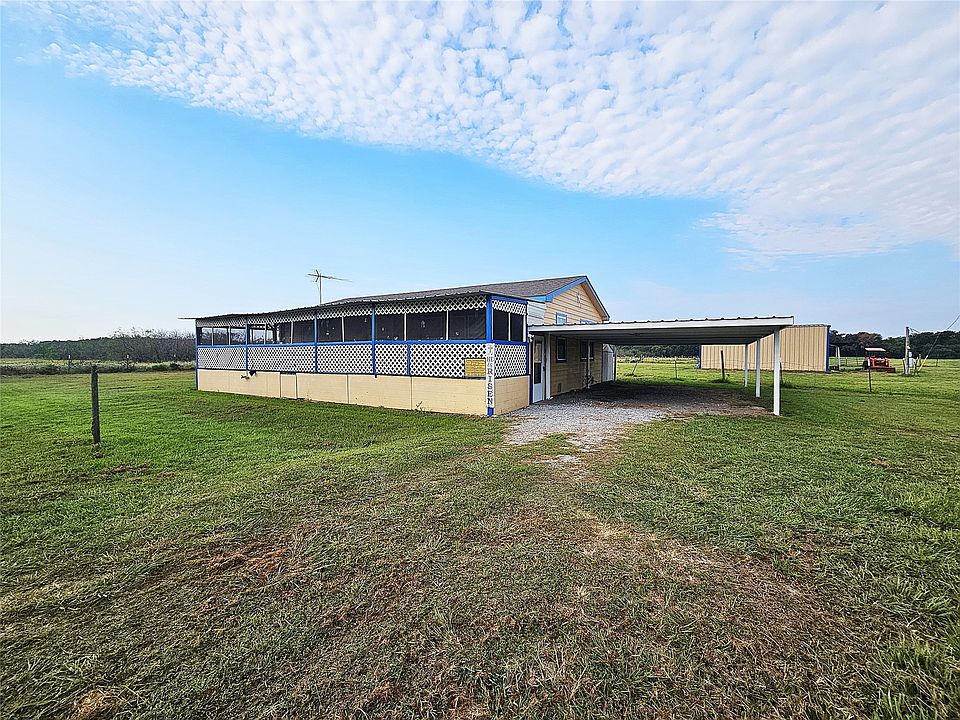 Country home on approximately 9.4 Acres, located about 4 miles outside of Groesbeck with road frontage on FM 2489 and LCR 636. Property features include a home with attached carport, metal building with covered parking or storage area, shipping container for additional storage, private well with well house, small metal shed, nice sized tank and improved pasture for animals or gardening. Home is a well maintained permanently affixed 2 bedroom and 2 bathroom manufactured home built and installed in 2009. Home had additional insulation when manufactured, a 2-year old roof (30-year composition shingle), all electric, central heat and air, aerobic septic system, open floor plan and more! Metal building has water lines and electricity running to it, and was previously used as an additional residence, but will need some work to be livable---or can be converted back into a shop or storage space.