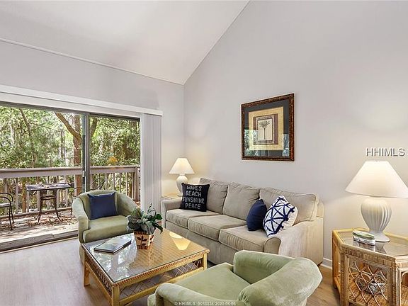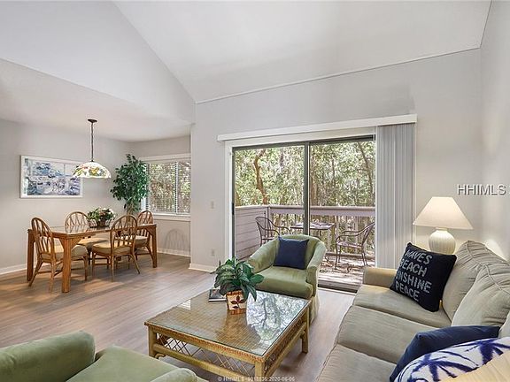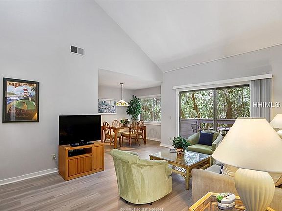 Recently updated with luxury vinyl flooring, freshly painted, new vanity in master bath and new carpet in bedroom. High cathedral ceiling make this charming Sea Pines one bedroom, 2nd floor villa, with a private deck overlooking a peaceful lagoon the perfect weekend getaway and investment property. Located in Harbour Town and a short walk or bike ride to restaurants, entertainment and shopping. Kitchen has newer appliances, a stackable washer and dryer and granite counter tops. Bedroom is spacious with a walk-in closet and an additional owners' closet. Racquet Club Villas have their own swimming pool and tennis courts. Move-in ready.