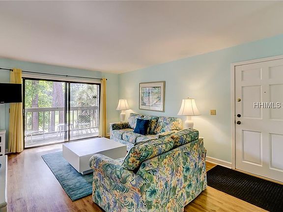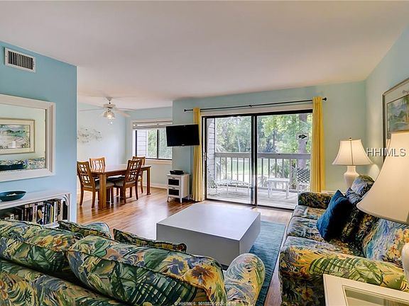 This 2nd floor unit views Pete Dye's lush Heron Point Golf Course. Open floor plan with the living room opening to the dining area plus wide sliding glass doors that brings in lots of natural light and overlooks the private deck to the golf course. The updated kitchen offers granite counter tops, all white cabinets, white GE appliances and a washer & dryer. The updated full bath offers a double vanity with a granite top, a spacious stone walk-in shower & stone flooring. The spacious master bedroom accommodates a king size bed. Just steps from the on-site swimming pool and Har-Tru tennis courts of Racquet Club Villas