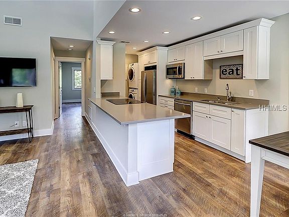 You haven't seen a Racquet Club Villa like this one before. Newly remodeled from top to bottom! Beautiful golf views. Outstanding quartzite counter-tops, new cabinets, new stainless appliances, reclaimed wood accent wall, new flooring throughout, new farmhouse style moldings throughout, new panel doors, double sink, new custom tiled shower with rain head, new vanity, tiled floor, cathedral ceilings with skylights, deep closet with owner's closet and wall safe. Newly furnished. Large pool and tennis courts. Very short distance to Harbour Town restaurants and shops. Sea Pines Beach Shuttle available. This won't last long!