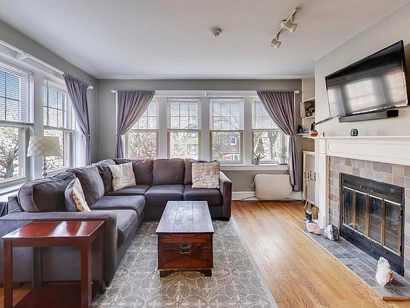 Cozy wood-burning fireplaceTwo good-sized bedroomsFilled with natural lightBright unitUpdated kitchenHardwood floors