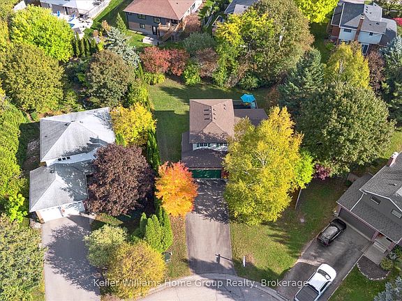 Family Living in the Heart of Rockwood! Welcome to this fabulous Brazolot-built side-split, lovingly maintained by its original owner for the past 31 years. Perfectly positioned at the top of a quiet, child-safe court, this home is the kind of place where kids learn to ride bikes, play street hockey, basketball, four square-or even a good old-fashioned game of hopscotch-right outside the front door. This is a home and a neighbourhood designed for making memories. Set on a generous pie-shaped lot, the 1591 sq. ft. property features a two-car garage, 3 bedrooms, 2 bathrooms, spread across a thoughtfully designed three-level floorplan. And if you need more room, the two lower levels provide an additional 850 sq. ft. of unfinished space-ready to become whatever your family needs next. Step inside and you're greeted by a spacious foyer that flows into the bright main-level family room, complete with a cozy gas fireplace and custom built-in bookcase. A convenient 2-piece bath is tucked nearby. Just a few steps up, you'll find the heart of the home: a kitchen with breakfast area overlooking the backyard, opening through a servery window to the dining room. The living and dining rooms boast cathedral ceilings and bay windows, filling the space with light and warmth. The upper level offers 3 generous bedrooms, including a primary suite with a walk-in closet and ensuite privilege. Downstairs, the possibilities are endless: two levels of unfinished space ideal for additional bedrooms, a rec or games room, or even a home theatre. The lowest level is already roughed-in for a third bathroom, with plenty of storage to spare. Beyond the walls, this location is unbeatable. You're within walking distance to school, parks, conservation area trails, and green space, all while enjoying the quiet comfort of one of Rockwood's most desirable neighbourhoods. Recent updates include a newer furnace & A/C (2015), roof (2022), and eaves cleaned (2025), giving you peace of mind as you settle in.