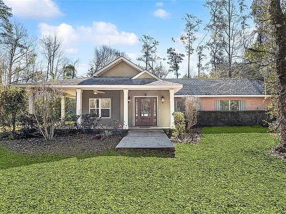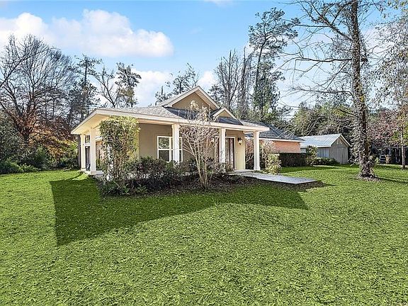 Lovely private home nestled on 4.2 acres in Magnolia Gardens Subdivision off of Military Rd. Just minutes to Downtown Covington. Exterior includes wrap around porch, courtyard, workshop, a new roof, new windows, and a trail to the Little Bogue Falaya River. 3 bedrooms + office/4th bedroom, tons of natural light & freshly painted interiors. Large Primary Suite with sunroom and Large Private suite in the back of the home. Convenient one-story floor plan offers easy living. Home has never flooded. Come live in beautiful sought-after Magnolia Gardens & put your personal touches on this beautiful home.