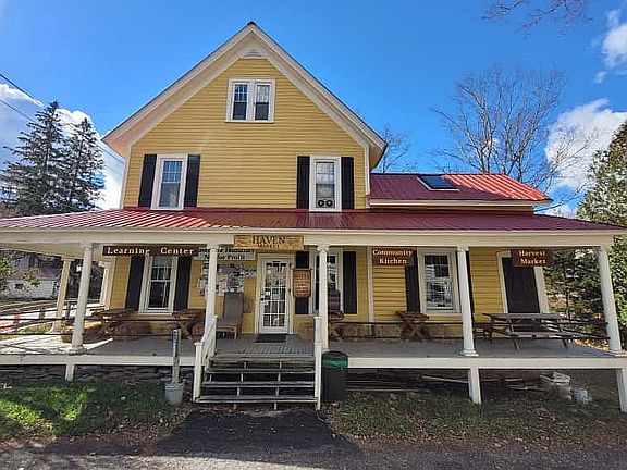 Outside, a wraparound porch, picnic area, and fire pit line a quarter-acre corner lot bordered by a peaceful brook that never floods. The town keeps Main Street immaculate year-round, and the property’s large parking lot—rare for the area—makes it perfect for customers or guests.