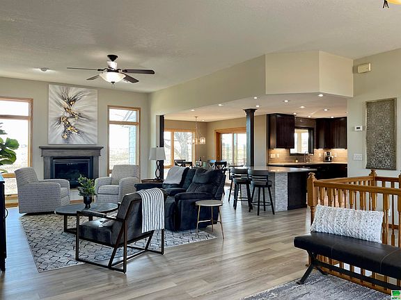 Beautifully updated walk out ranch on highly desirable Mallard Ave. on the south side of Storm Lake. Take a long look all that this beautifully updated home with new paint and carpeting has to offer. Enter the front door and be impressed with how the soaring ceilings and open concept combine to invite you inside. Stunning, yet comfortable spaces make you want to stay. The living room is generous and includes south facing views of wide-open spaces as well as a lovely gas fireplace. The newly remodeled kitchen features new cabinetry, gorgeous quartzite counters and a stainless appliance package that is included. Just off the kitchen is the laundry area that is also the mudroom to the garage. In the garage, is abundant space for three cars and clever overhead storage to reduce clutter. On the other side of the main floor is a spacious owner's suite with its own luxurious bath and walk-in closet. There is also a den/home office right as you enter the front door and an additional bedroom and bath. The open staircase helps flood the lower-level walkout with natural light. Here you will find a generous living room, two more bedrooms (both with walk-in closets), a large bathroom, utility room, storage room and a workout room/shop space (this room could easily be an additional bedroom with the addition of an egress window). Access the back yard through the french doors on this level or via the screened porch off the dining area upstairs. The entire yard has been professionally landscaped and includes paver patios, a built-in outdoor kitchen, and a gas fire pit. Before you leave, take a moment to enjoy the partial lake views from the front porch. This quality-built home is truly a delight. It really is as beautiful as the pictures show!