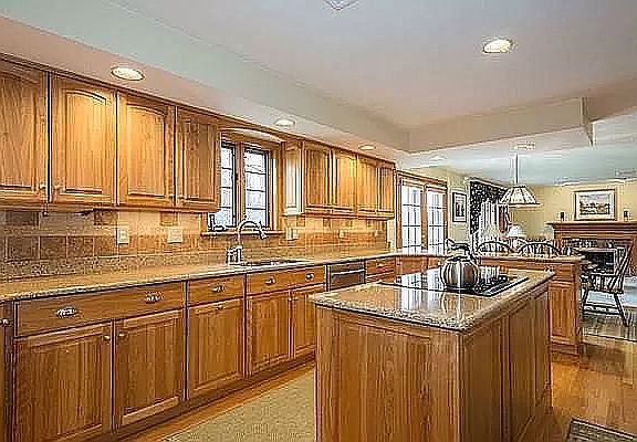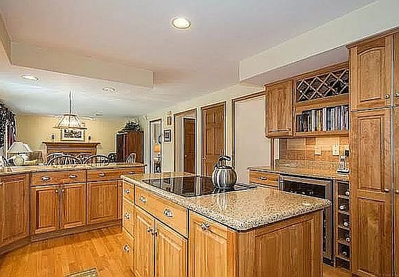 - Kit Dscrp: Pantry, Main Level, Dining Area, Flooring - Hardwood, Countertops - Stone/Granite/Solid, Deck - Exterior, Kitchen Island, Stainless Steel Appliances, Open Floor Plan, Recessed Lighting, Exterior Access, Wine Chiller, Peninsula