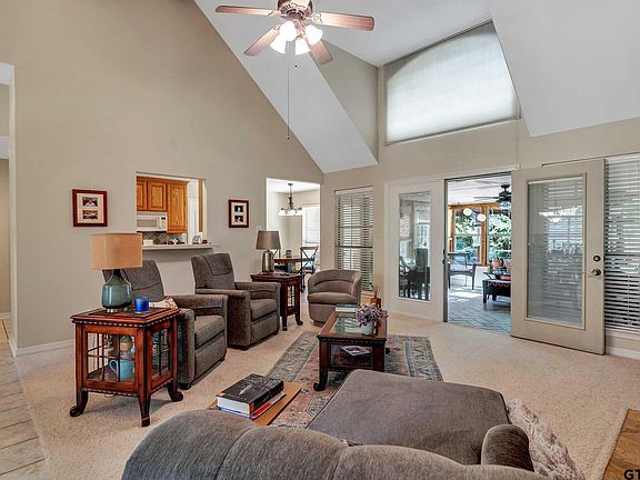 Fabulous home in Holly Lake Ranch, Harmony ISD, enjoy a 3 bedroom, 2 bath with beautiful tall ceilings, tons of light, a gorgeous sunroom, solid surface countertops in the kitchen, very roomy primary bedroom, and even a bonus room not included in this square footage upstairs through the garage. Outside you step into your own little private oasis with a pergola to enjoy the privacy of your backyard, and even a nice shed for storing your golf cart & tools on a quite cul-de-sac. Don't miss out on this one!