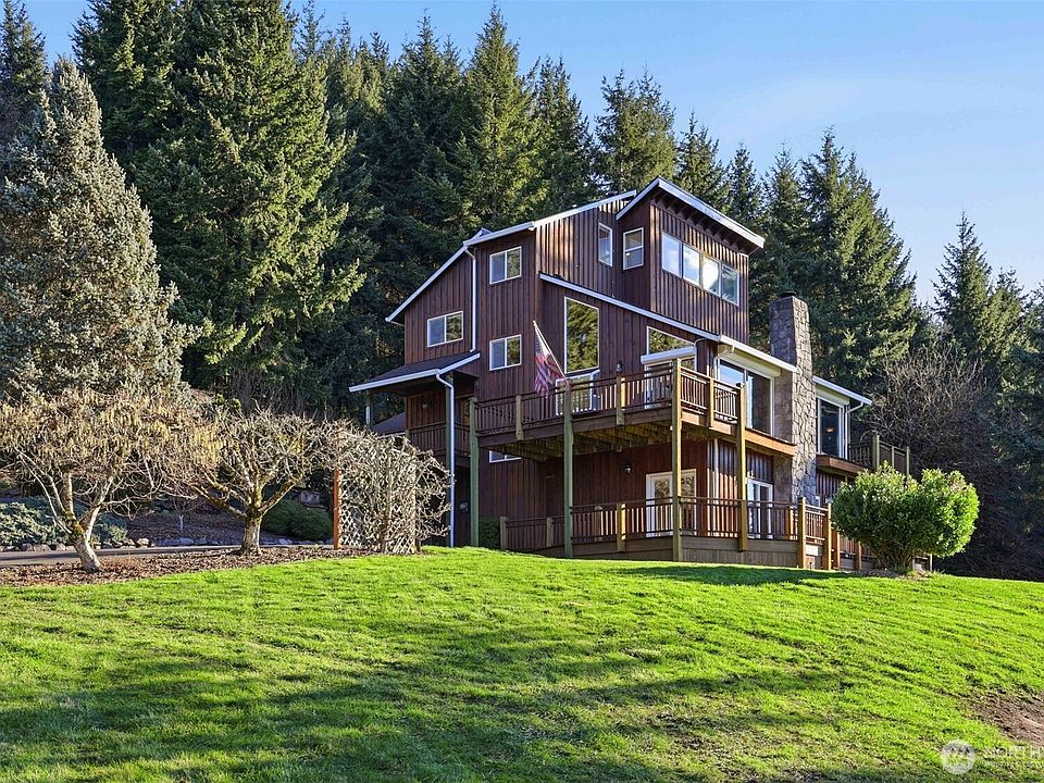 Wake up to sweeping Columbia River and valley views from this peaceful 3-acre Woodland retreat, where privacy, space, and natural beauty define everyday living. Tucked behind a gated entrance on a quiet private road, this fully fenced property offers a true sense of seclusion while remaining close to town. The main home is designed to capture light and river views from nearly every room. The upper loft provides a stunning vantage point—perfect for a home office, studio, or quiet escape. The rest of the main house features the primary bedroom and 2 additional bedrooms, formal dining room, living room, and a light-filled kitchen with cook island and cozy nook with quartz countertops. Refinished wood floors and abundant windows enhance the warmth and openness of the space, with multiple decks inviting you to relax and take in the scenery.The lower level offers a full ADU/second living space with private entrance, full kitchen, two bedrooms, full bath, and washer/dryer hookups, ideal for guests or multi-generational living, while still connected via interior stairs. The impressive 30’ x 60’ barn includes three bays and a lean-to, fully equipped with water and power. Whether you need space for RVs, boats, and toys or envision stalls and a hay loft for a working barn, this versatile structure enhances the functionality and appeal of this standout Pacific Northwest retreat.This is a rare blend of acreage, views, and flexibility just minutes from town. Don’t miss this opportunity.