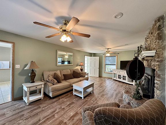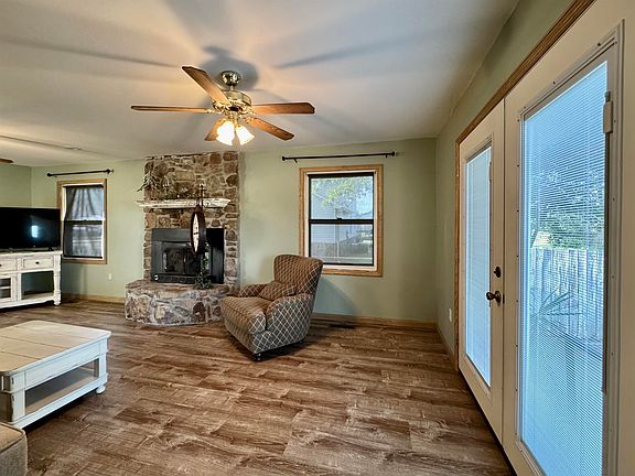Extra storage in garageFenced backyardLarge den with fireplaceLarge wired workshopLarge rooms