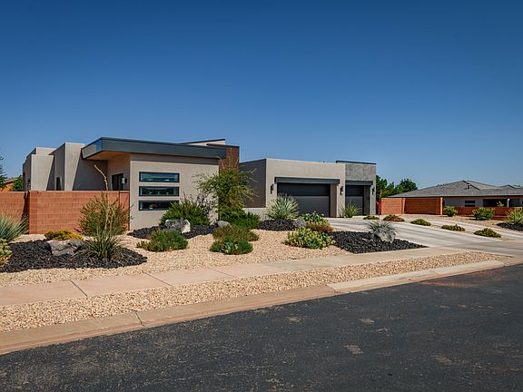 Seller concessions of $15,000.00 are offered at closing. 108 N Arrowhead Lane, a luxurious retreat, offers breathtaking red rock views of the Kayenta Mountains with seasonal rainwaterfalls. Gourmet kitchen with Bosch appliances, spacious layout connecting to outdoor living by a three-panel greatroom slider door, ceiling fans throughout, linear crystal rock fireplace, master bedroom recessed lighting, and open walk-in shower. Outdoor living complete with a swim spa, hot tub, RV, or pickleball court cement poured. Flower beds, desert landscape front and back for a low-maintenance yard. Exceptional living near local trailheads, Tuacahn Amphitheater, and Black Desert Resort. Owner/Agent