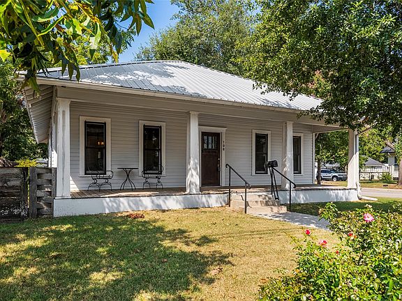 Feast your eyes on 108 N Avenue B None, Elgin, TX 78621, a single-family residence in Bastrop County that's not just a house, but a time-traveling experience back to 1895, only with way better plumbing and in great condition! Prepare to be charmed! The living room is where cozy meets captivating, featuring a fireplace for crackling good times, crown molding that adds a touch of regal flair, and a wood wall and wood ceiling with beamed ceiling that will have you feeling like you're living in a rustic, yet refined, dream. Get ready to host gatherings that are equal parts stylish and snug. Imagine sinking into plush seating, the fire dancing, and laughter echoing through this gorgeously detailed space. Prepare to unleash your inner chef in a kitchen that's both functional and fabulous, featuring a backsplash, a kitchen peninsula, and an island range hood that's ready to make a statement, all crowned with stone countertops, a stovetop, and shaker cabinets. Did we mention the crown molding and wood wall? Because even your kitchen deserves a little bling! Retreat to a bedroom that promises sweet dreams and stylish mornings, complete with an ensuite bathroom for ultimate privacy and a wood wall to give your sleeping space that extra touch of 'wow'. The bathroom is a sanctuary of suds and serenity, boasting a soaking tub for luxurious relaxation and a tiled walk-in shower that's practically begging for you to sing your heart out. Outside, a porch, fenced backyard, and patio await, offering the perfect spots for sipping sweet tea, hosting barbecues, or simply soaking up the Texas sunshine. This attractive property is a treasure trove of character and comfort just waiting for someone to call it home.
