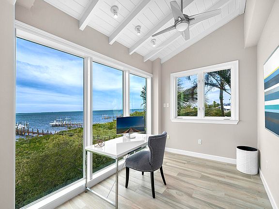 BAY FRONT Modern Coastal in Buccaneer Point Estates. This solid CBS home tucked away near the end of a private street offers unparalleled privacy and the sought-after allure of the luxury lifestyle. Experience a masterpiece built to incorporate and withstand nature's elements. Interior and features that draw on the natural backdrop fusing coastal design w/contemporary architecture. Upon entering the residence and ascending the stairs, panoramic waterfront views unfold across the entire home through floor-to-ceiling windows. Fluidity in design is the essence of the concept for this home. The kitchen is adorned with opulent finishes including sleek quartz countertops, lacquer kitchen cabinets, a natural wood island, recessed lighting, and Thermador appliances. This home offers 5 bedrooms, 3 full bathrooms, and 3 half bathrooms. Two spacious bedrooms share a bathroom on the main living level with an additional half bath in the hallway and additional 2 bedrooms located on the third floor share an adjoining bathroom. The primary suite features floor-to-ceiling windows overlooking the bay, two private balconies, an office nook, and a resort-style bathroom. Notable features in the primary suite include a custom walk-in closet, a dual entry rain shower, a stand alone jet tub, and marble tile throughout. Continue up the stairs to access the rooftop terrace where you can enjoy 360 degree sunset views, soak in the hot tub, entertain guests, and serve drinks from the enclosed wet bar! Complete with an elevator accessing each floor up to the third story. Outdoor amenities include an in-ground pool, artificial turf grass, mature landscaping, cabana pool space, a two-car carport, charging station and a pier dock offering deepwater dockage for all your vessels including a 20,000 pound lift and jet ski lift. This location offers unparalleled boating access with close proximity to Adam's Cut & Tavernier Creek for ocean access. We invite you to experience the epitome of coastal liv