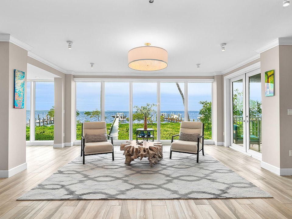 Pier dockCabana pool spaceHot tubNatural wood islandIn-ground poolDeepwater dockageFloor-to-ceiling windows