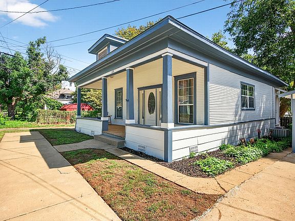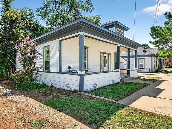 Built in 1920, this home is full of character and makes great use of space, all less than a mile from Downtown Denison with its shopping, dining, live music, art walks, and festivals just minutes away. Located in a quiet neighborhood, the property features tall ceilings and a welcoming covered front porch. The spacious living room is filled with natural light, and a versatile flex space is ideal for an office, game room, or formal dining area. The primary bedroom is generously sized with tall ceilings, and the full bath is highlighted by a classic clawfoot tub with shower. The eat-in kitchen, accented with tin ceiling tiles, includes the refrigerator and the washer and dryer. A 5’ x 6’ alcove off the kitchen and utility room functions as a large pantry and extra shelving space, while an 8’ x 6’ mud room provides direct access to the carport. Outside, the shared driveway leads to a carport with additional storage space. The property is currently tenant occupied. The property has a shared driveway and carport with 1231 W Main, also for sale. Together, the two homes are perfect for multi-generational living, a mother-in-law suite, or investment opportunities.