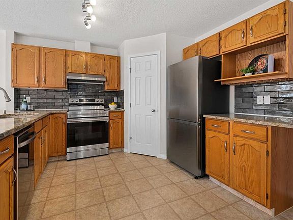 South-facing walkout with sweeping views and fresh updates! Welcome to 108 Hidden Creek Rise NW, a bright and inviting 3-bedroom semi-detached home in a quiet, professionally managed complex. Freshly painted and completely carpet-free, this home offers modern updates, low-maintenance living, and an attached garage for everyday convenience. The main floor features a stylish open layout with brand-new stainless steel appliances, granite counters, a new backsplash, and an electric fireplace to anchor the living space. Large south-facing windows flood the interior with natural light, while the balcony extends your living area with open views. Upstairs, the primary suite includes a walk-in closet and private ensuite. A generous flex space with built-in desk is ideal for working from home or managing your day-to-day, with two additional bedrooms and a full bath completing the level. The walkout basement is a rare find—bright, spacious, and ready to be finished into a home gym, rec room, or guest space, giving you the chance to add both space and value. Low condo fees cover lawn care and snow removal, so you can enjoy more free time. With quick access to schools, transit, shopping, parks, pathways, and Stoney Trail, this home delivers both convenience and connection to the outdoors. *Property has been virtually staged.