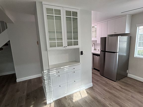 Be the first to enjoy this beautifully renovated front unit, offering 2 spacious bedrooms and 1.5 bathrooms in a desirable townhome layout. This bright and inviting home features brand-new wood laminate flooring throughout, a completely updated kitchen with all new appliances, including a refrigerator, dishwasher, range hood, and electric range. You'll also love the cabinetry and plentiful storage paired with new quartz countertops. The lower level includes a spacious living area, dining nook, bar area, and a convenient powder room perfect for entertaining. Upstairs, you'll find two generous bedrooms and a fully renovated bathroom with modern finishes. Located directly across from Parras Middle School and just a short walk or bike ride to the beach, this home offers both comfort and convenience. Includes 1 parking space in a shared garage with automatic opener and private storage cabinet. Don't miss your chance to live in this fresh, modern space in a prime South Bay location! Tenant pays for electricity, phone, cable and internet.