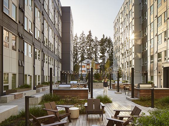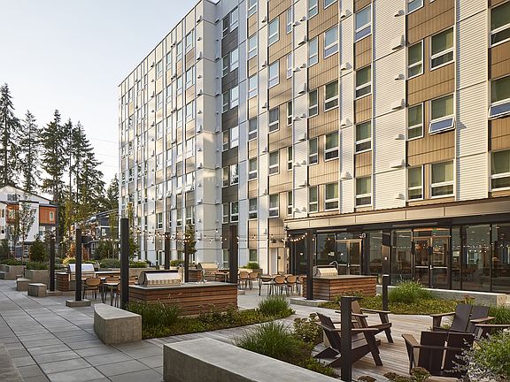 Verdant Apartments in Shoreline offers a sustainable lifestyle amidst nature's beauty. It's a gateway to greener living, blending suburban tranquility with urban connection. This new community offers modern living and an easy commute to Seattle, Bellevue, and beyond, with the Shoreline South/148th light rail station steps away. Enjoy remote work amenities, lounges, top-tier fitness, outdoor hangouts, and two lush courtyards.