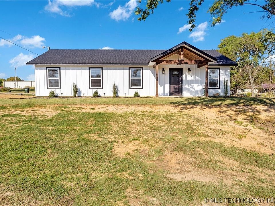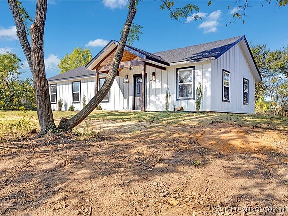 New Construction Home in Fort Towson - Modern Country Charm Near Lake Recreation Welcome to 108 NE 1st Street, Fort Towson, Oklahoma - a brand-new 3-bedroom, 2-bath ranch-style home offering the perfect blend of modern design and small-town comfort. With approximately 1,200 sq ft of thoughtfully designed living space, this home showcases a country-inspired exterior, fresh neutral colors, and an open-concept interior ideal for everyday living and easy entertaining. Step inside to discover a bright, inviting layout highlighted by a vaulted ceiling, electric fireplace, and ample natural light throughout. The kitchen features white shaker cabinets,stainless-steel appliances, and a dining area with French doors leading to the backyard - perfect for family meals or relaxing evenings. The primary suite offers a walk-in closet and private bath, while two additional bedrooms provide flexible space for guests, an office, or hobbies. This home is served by PSO Electric and sits on a peaceful, shaded lot in a quiet neighborhood. The cedar post front porch with a rustic gable design creates a warm, welcoming entrance that perfectly blends farmhouse charm with modern style. Enjoy small-town charm with the convenience of being just minutes from local parks and recreation areas. New builds are limited in Fort Towson, making this property a rare find for those seeking quality craftsmanship in a serene southeastern Oklahoma setting. Located only 10 minutes from Raymond Gary State Park and Lake, this home offers easy access to boating, fishing, swimming, and camping. You're also just a short drive to Valliant and Hugo for shopping, dining, and entertainment. Major destinations are conveniently close - about 2 hours to the Dallas-Fort Worth Metroplex and roughly 2 hours 15 minutes to Oklahoma City - making it a great fit for commuters, retirees, or weekend travelers seeking peace without isolation.