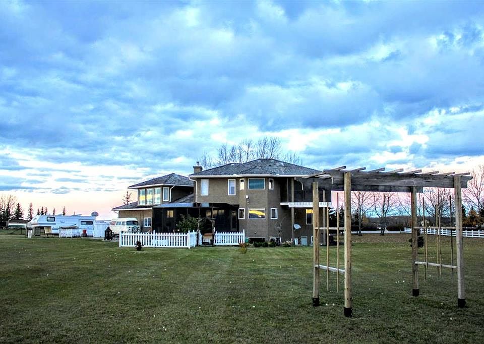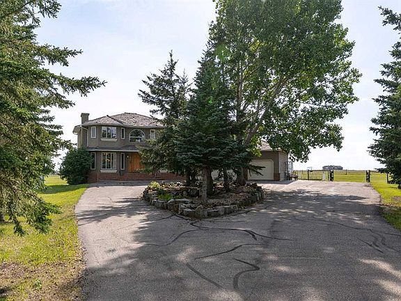 Discover an extraordinary opportunity at 108 Pleasant View Heights—a legacy property where stunning natural beauty meets remarkable investment potential. This isn't just a home; it's a private 8.5-acre sanctuary, fenced and cross fenced with four pastures on a quiet cul-de-sac. With 180-degree mountain views and just a 6-minute drive on pavement to Cochrane, this property offers the perfect blend of serene acreage living and strategic development possibilities.The added value of this land lies in its future. It presents a rare opportunity for subdivision or other creative ventures. The upcoming extension of municipal water and sewer to the property line opens up even more possibilities (subject to Rocky View County bylaws and approvals). Whether you envision a multi-generational estate or unlocking investment potential with additional parcels, the opportunities here are vast and exciting.The family home, with nearly 3,000 square feet above grade, is a masterpiece of design. Inside, a grand spiral staircase, four generous bedrooms, and an abundance of natural light create a warm and inviting haven. The main floor features a spacious living room, a large kitchen, formal dining, a main-floor office, and laundry. You'll love the massive covered sunroom on the main level and a secondary covered sunroom upstairs.Above the attached triple garage, a huge bonus room with floor-to-ceiling windows and a cozy fireplace provides the perfect spot to unwind while soaking in those spectacular views. Enjoy a triple garage with in-floor heat and a large paved driveway, providing ample space for vehicles and hobbies. Outside, mature trees create a private, serene oasis. This property offers the best of both worlds: the peaceful tranquility of acreage living with easy access to all that Cochrane has to offer. Commute easily to excellent schools, diverse shopping, and outstanding recreational facilities like the SLS Centre. From downtown boutiques to endless outdoor adventures, Cochrane provides an active and fulfilling lifestyle. This is more than just a house; it's a legacy property offering a unique blend of natural beauty, spacious living, and incredible investment potential.
