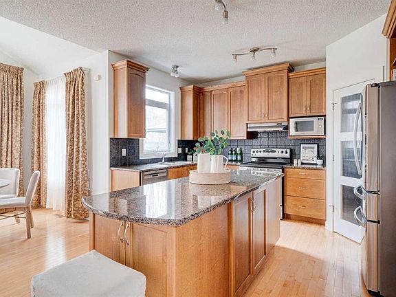 **OPEN HOUSE - SATURDAY, NOVEMBER 8th FROM 1:00-3:00!** An exceptional opportunity to own a fully developed residence in one of Calgary’s most sought-after communities - Tuscany Estates. With over 3,000 sq. ft. of beautifully finished living space, this meticulously maintained, original-owner home offers a rare combination of comfort, function, and timeless design. A grand open-to-below foyer welcomes you into a bright and airy main level where large windows and a seamless open-concept layout fill the home with natural light. The spacious kitchen features rich maple cabinetry, granite countertops, a central island, corner pantry, and endless storage - perfect for both everyday living and entertaining. The kitchen overlooks the dining and great room, anchored by a cozy gas fireplace, with sightlines to the southwest-facing backyard for all-day sun. A private office with French doors, a convenient laundry/mudroom off the garage, and a two-piece powder room complete the main floor. The open staircase with natural wood and iron spindle railings leads to a versatile ~22’ x 15’ bonus room with vaulted ceilings - an ideal retreat for movie nights or a children’s play area. The primary suite is generously sized (13’ x 14’) and offers a large walk-in closet along with a 5-piece ensuite complete with dual sinks, an oversized soaker tub, and a walk-in shower. Two additional spacious bedrooms and a full bathroom complete the upper level. The lower level provides even more living space, featuring a large recreation area, a fourth bedroom, an additional flex/office space, and a full bathroom with a jetted soaker tub and walk-in shower. Ample storage throughout ensures everything has its place. Set on a large private lot with sunny southwest exposure, the backyard is a true oasis. A two-tiered deck with pergola provides the perfect spot to relax or entertain, while the newly poured concrete walkway wraps around the home and extends the driveway to accommodate three vehicles. Mature landscaping, including apple and pear trees, lush lawn space, and a large storage shed, complete this incredible outdoor setting. This home has been freshly painted throughout - making it move-in ready on this incredibly quiet family-oriented street with only local traffic - meaning a safe area for kids to play. Within walking distance to parks, pathways, schools and amenities, this home offers it all. This home perfectly combines warmth, practicality, and elegance in a prestigious location. Don’t miss your opportunity to own a remarkable property in Tuscany Estates, one of Calgary’s most desirable communities.