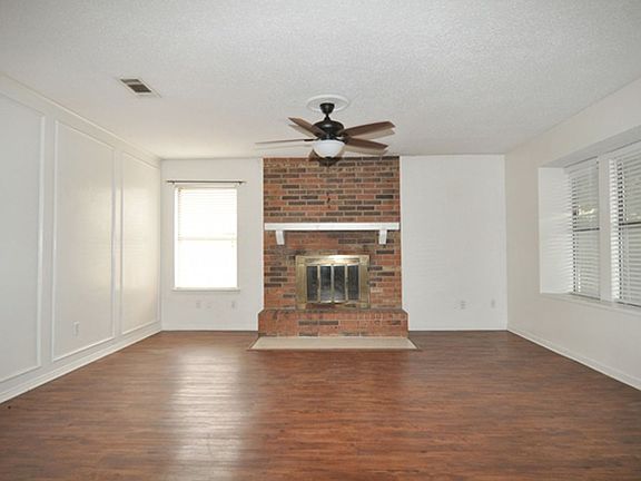 Floor-to-ceiling woodburning brick fireplaceCeiling fansTile floorsGenerous walk-in closetsExtra counter spaceLarge fenced backyardNeutral colors