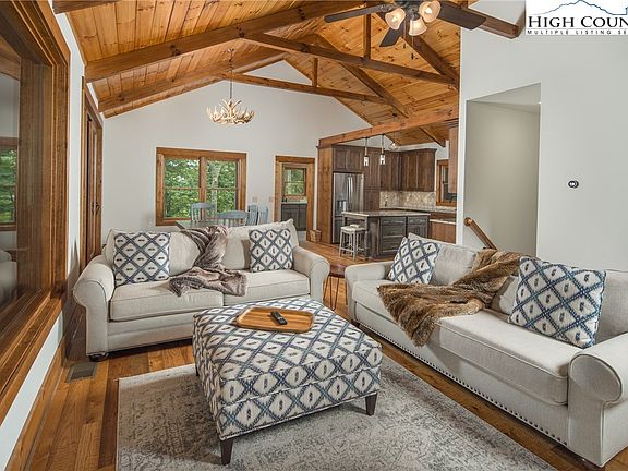 108 Nighshade's scenic beauty abounds. When you enter this exceptional mountain home, you are greeted by expansive windows with sweeping views of the Blue Ridge mountains. This home features high ceilings with exposed beams and crafted wood accents that complement the open floor plan. Its bright and airy aesthetic accentuates the stunning details. 108 Nighshade's special touches add so much character and craftsmanship. Dual living spaces welcome guests to stay a little longer. Enjoy your private retreat on the main level, while your guests enjoy a lower level designed for entertaining! This home provides plenty of spaces to gather together. An expansive porch with wood burning fireplace as well walk out lower level for yard games in the woods, extend your lifestyle from indoors to out with incomparable views to share with friends and family. 108 Nightshade Road delivers a luxury lifestyle just steps from a world of adventure. BRMC amenities include Ascent Wellness and Fitness Center, Lookout Grill, Jasper House, Watson Gap Park (Featuring Pickleball Courts, Bocce Ball, and Horse Shoe) as well as Chetola Sporting Reserve and, just a stones throw away, The Meadows Village (Featuring stunning Mountain Side Pool, Pickleball Courts, Pavilion and Great Lawn). For the nature lover, nearly 50 miles of hiking/UTV trails, tucked swimming holes, pure mountain streams, and a 6,000 acres backyard are waiting for your exploration. BRMC’s national park-like setting and elevated amenities create the perfect blend of retreat, rewind, and recreation. Offered furnished, 108 Nightshade is ready for you to come home to Blue Ridge Mountain Club, a premier mountain community, where a life-well lived is yours.