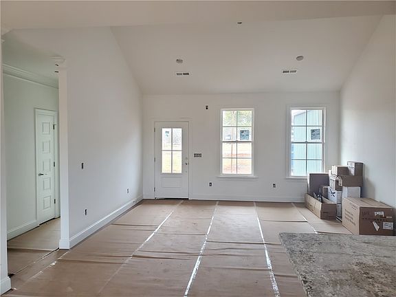 Whether you are looking for the perfect place to grow your family or a low-maintenance sanctuary to enjoy your retirement, this stunning new-construction ranch offers the ultimate in single-level convenience and modern elegance. The striking blue board-and-batten exterior with stacked stone accents provides immediate curb appeal, welcoming you into a home where every detail has been designed for ease of living. The heart of the home is a soaring, vaulted great room that feels both grand and inviting, offering a seamless flow that is ideal for supervising young children at play or hosting holiday gatherings with friends and grandkids. Any home chef will fall in love with the open kitchen, featuring crisp white shaker cabinetry, premium granite countertops, and a generous center island that functions perfectly as a homework station or a casual spot for morning coffee. The primary suite serves as a true private retreat, elevated by a sophisticated tray ceiling with crown molding and a spa-like ensuite with a double vanity—offering a touch of luxury for busy parents or retirees seeking a hotel-quality experience at home. Practicality is built into every corner, from the dedicated laundry room with integrated shelving to the two-car garage that provides ample storage for strollers and bikes or a pristine space for a workshop and hobbies. Because this is a brand-new build, you can enjoy the peace of mind that comes with high-efficiency systems and the absence of a "to-do" list, leaving you more time to enjoy the spacious backyard and the comfort of your new community. This versatile layout adapts to your life as it changes. Schedule your tour today to see how this beautiful property perfectly fits your next chapter!