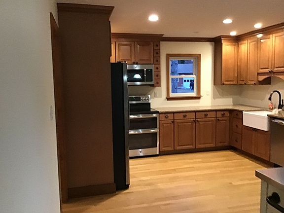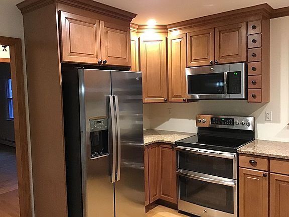 Dual zone heating separate thermostats in basement and main floor base board oil heating downstairs + upstairs . partially finished bsmnt , new FRIG plus bonus stainless steel FRIG + stackable washer and dryer along with separate washer and dryer . 2 of 3 bedrooms large walk in closets . Huge storage room in bsmnt . stainless steel appliances , 3 yo new kitchen self closing doors , hardwood floors recently restrained in matte finish , wood burning fireplace , 3 yo new Andersen windows and storm doors , new oil tank 275 gallon , basement entire length and width of house , , detached 1.5 garage , shed , property is up against pine barrens for 4 wheeling , hiking , mountain biking , outside 220 + 110 independent outlets , 2 driveways north + south side of house . Access to basement from outside of house thru balcony doors and also from inside of house . Functional sink in basement with hot and cold water. Roof in very very good condition few y.o. Electric service 200 AMPS , with smart meter . Attic divided with crawl space one side other side storage and ability to stand up in it . In the foyer 3 additional closets one is a linen closet .