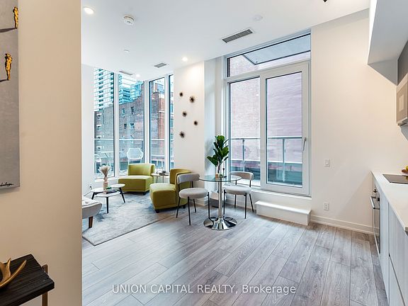 Contemporary Elegance at Peter & Adelaide! This rare southwest corner split 2-bed + media, 2-bath suite redefines urban living with soaring 10-ft ceilings, abundant natural light, and a one-of-a-kind layout designed for ultimate privacy. Situated on the exclusive third floor with only four additional suites, this home offers a serene and quiet retreat-perfect for those seeking both modern luxury and tranquility. Enjoy 987 sq. ft. of total living space, including a stunning 284 sq. ft. wraparound terrace that seamlessly blends indoor and outdoor living. The sleek modern kitchen features integrated European appliances, stylish black hardware, and warm laminate wood flooring throughout. Plus, thoughtfully designed pot lights create a warm, inviting ambiance. Unparalleled convenience: Includes 1 parking + 1 locker, along with unbelievable building amenities! With a perfect 100/100 Walk & Transit Score, daily errands, entertainment & all hospitals and the business district are just steps away. Multiple transit options (310 SPADINA, 503 KINGSTON RD, 510 SPADINA) are only 2-3 minutes away, while Billy Bishop Airport is just an 8-minute drive. Explore Toronto's best local cafes, boutique shops, restaurants, and independent grocers-all right at your doorstep! Unbeatable Amenities: A rooftop pool + private cabanas with Bbqs & lounge deck, communal workspace, 24 concierge, state-of-the-art indoor & outdoor Fitness studio, yoga studio, infrared sauna + private dining room, pet spa & kids Zone!