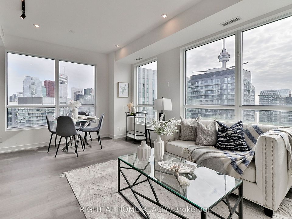 Welcome to Peter & Adelaide Condos. Urban Sophistication Meets Modern Design In This Stunning 2-bed, 2-bath Residence In The Heart of Toronto's Entertainment District. Located At The Highly Coveted Corner Of Peter & Adelaide, This Bright and Functional Suite Offers Premium Finishes, Intelligent Layout, And Unmatched Walkability. Step Inside To An Open-Concept Floorplan Highlighted By Large Windows, Upgraded Pot Lights Throughout, Wide Plank Flooring, And A Contemporary Chef-Inspired Kitchen Featuring Stone Countertops, Built-In Appliances, And Sleek Cabinetry. The Spacious Living Area Extends Seamlessly To A Private Balcony, Perfect For Morning Coffee or Evening City-Wide Lounging. Both Bedrooms are Generously Sized With Ample Storage, Including A Primary Suite With 4-Piece Ensuite, While The Second Bedroom Is Ideal For Guests, Family or Dedicated Workspace. Situated At The Centre Of Toronto's Most Dynamic Pocket, Residents Are Surrounded By Endless Convenience. Just Minutes Away From Osgoode Subway Station, The World-Class Attraction CN Tower, Rogers Centre (Home Of The Blue Jays And Major Events), The Well (New Lifestyle Hub With Shopping, Dining & Entertainment) and King West Entertainment District Including Cafes At Every Corner. From Sports And Nightlife To Culture and Cuisine, Everything You Need Is Steps From Your Door. Building Amenities Include 24/7 Concierge, Full State Of The Art Fitness Centre, Infrared Sauna, Co-working Space, Lounge & Party Room, Outdoor Pool And Rooftop Terrace With Full Grocery Supermarket Bestco At The Ground Floor Retail Space, including A Nearby No Frills and Shoppers Drug Mart. Whether You Are A Young Professional, Couple, Or Investor Seeking Strong Demand And Long-Term Value, This Residence Offers The Perfect Blend Of Urban Living, Convenience, And Modern Comfort.
