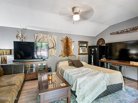 Nestled in the heart of Etoniah State Park, this exceptional property is a hunter and angler's paradise. Spanning three adjacent lots and over 5.66 acres, the centerpiece is a 1,402 sq. ft. Southern Pine log home featuring Anderson windows and doors, an aluminum roof, and systems already in place-including a 2021 well pump and septic system. The home is sealed and permitted, with plans included, offering a perfect blank canvas ready for your finishing touches. The property includes a Honda 7000 generator capable of running the well, and a nearby 27 x 30 garage provides ample storage and shelving. Also featured is a separate one-bedroom lodge with electricity and a workman's shed-ideal for guests or extended stays. Outdoors, the land is thoughtfully cleared, allowing easy access for ATVs and trail walking. Multiple places for deer feeders. Enjoy over 5.66 plus acres of hunt-ready land with cut trails, and quick access to George's Lake with boat access just minutes away.