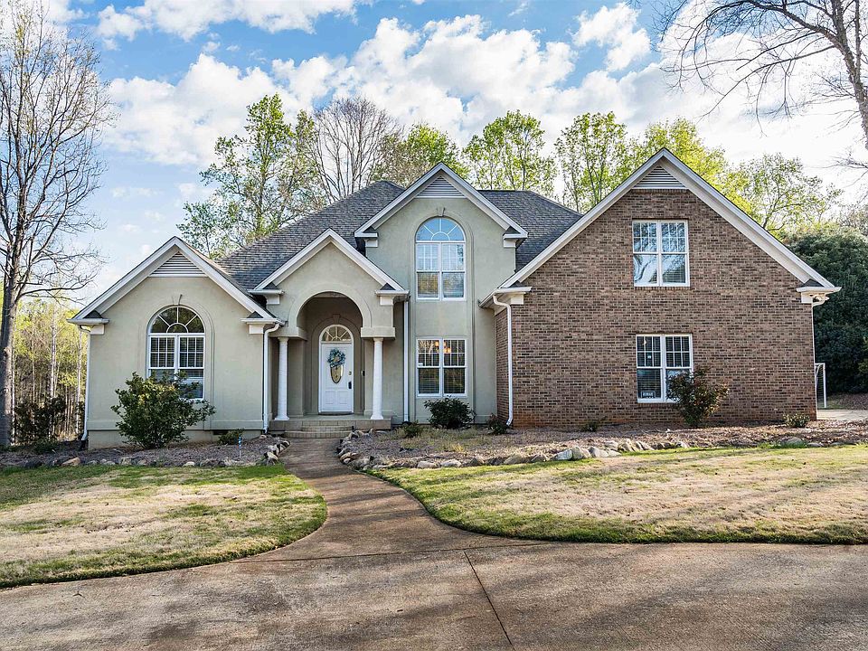 River Falls Golf Course community! Beautiful corner lot on a pond with views of the #4 hole. The circular driveway leads to a front entry. The foyer opens to a formal dining room and sunken den. The eat-in kitchen has an island, granite countertops, and all appliances remaining. The main level master suite has a walk-in closet, jetted tub, separate shower, and a triple vanity. A guest room is also on the main level. Upstairs, there are two other guest rooms plus an additional bonus room with a closet that can serve as a 5th bedroom. The home is being sold "AS IS". Neighborhood amenities include a pool, tennis, golf, clubhouse, etc. To us those, you must join River Falls Golf Club.
