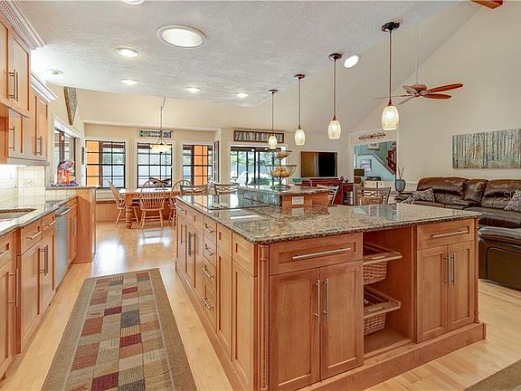 - Ceiling Fans(s), Open Floorplan, Split Bedroom, Thermostat, Kitchen/Family Room Combo, Living Room/Dining Room Combo, Solid Surface Counters