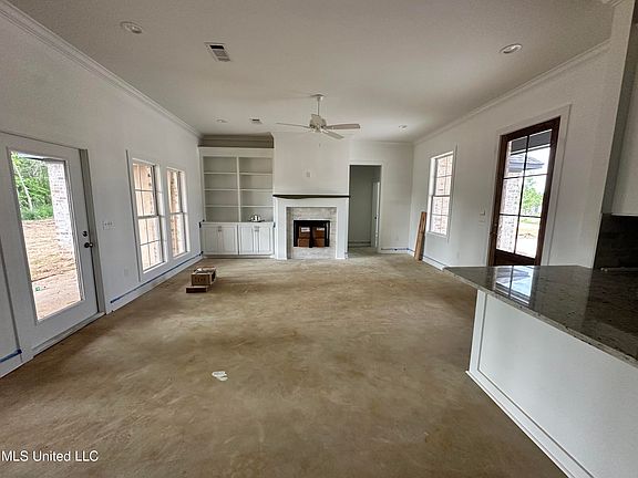 - Built-in Features, Ceiling Fan(s), Crown Molding, Granite Counters, Kitchen Island, Pantry, Soaking Tub