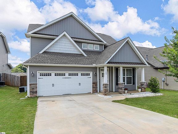 Welcome to 108 Ramshackle Way, a stunning 3-bedroom, 2.5-bathroom home located just minutes from downtown Greer. The home's striking facade features a combination of sleek siding and stone accents, complemented by a spacious two-car garage and a covered front porch that is perfect for relaxing and enjoying the neighborhood. When entering, you will be greeted by a large foyer leading you to the heart of the home, the open kitchen and living space. This kitchen boasts stainless steel appliances, including a dishwasher, built-in microwave, and electric range. The granite countertops and large island provide plenty of prep space, while the white cabinetry offers ample storage. The open layout seamlessly connects the kitchen to the dining and living areas, making it ideal for entertaining. The large master suite includes a walk-in closet and ensuite bathroom with a double vanity, soaking tub, and a separate shower. The back yard is fully fenced and features a covered patio that’s great for cook-outs. 108 Ramshackle Way is not just a house; it's a home where memories are made. Schedule a showing today and experience all that this exceptional home has to offer!