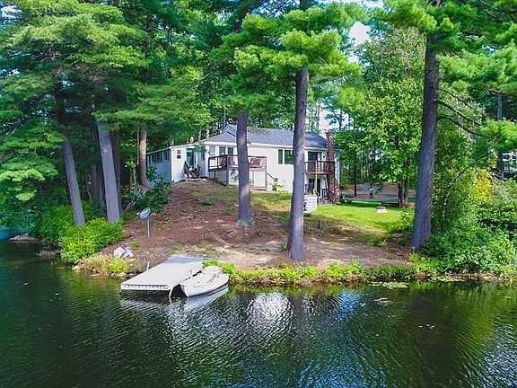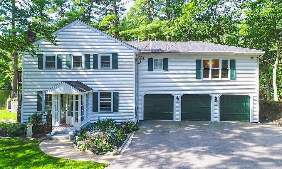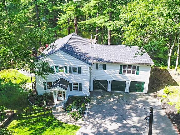 Stunning WATERFRONT views await you at this beautiful oasis! Surrounded by a breathtaking view of Foster's Pond on 3 sides, this home features a private dock - great for boating, fishing/ice fishing, and skating right in your own backyard! The house offers an updated oversized gourmet kitchen, master suite, 2 large bedrooms, family room and porch, and 3 decks with water views! Beautiful windows throughout the home let in lots of natural light and great views. The first floor has a fireplaced living room and bedroom with attached bath, exercise room, and deck access overlooking the pond. No need to go on vacation when you can live here!