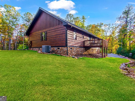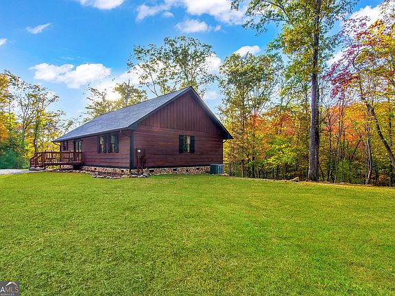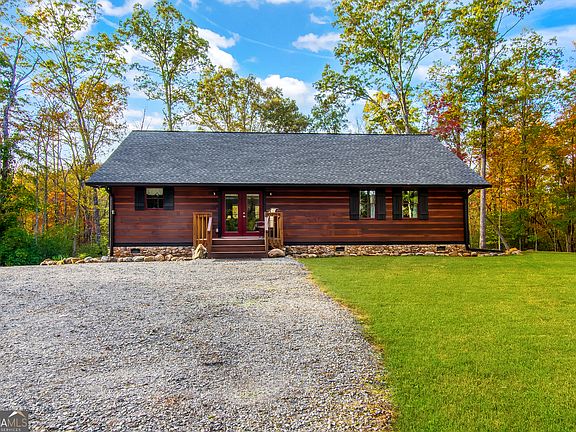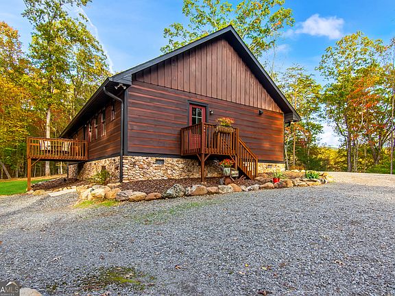 Welcome to 108 Red Hawk Trail - a meticulously maintained, custom-built one-owner mountain home nestled on 3 private acres in the heart of Ellijay. This charming 2 bed, 2 bath one-level residence blends serene mountain living with modern convenience, including HIGH-SPEED FIBER OPTIC INTERNET. Built just 7 years ago, the home features a 2018 roof, HVAC, hot water heater, a dual-fuel heating/air system, whole-house water filtration, and an electric monitor for efficient climate control. The kitchen offers warm wood cabinetry, stainless steel appliances, gas stove, Formica counters, and luxury vinyl plank flooring throughout. The open dining area flows into a living room with backup propane heat and space for a future fireplace. Recent upgrades include fresh porch staining, newly painted trim, and 36-inch doorways for potential wheelchair accessibility. A brand-new washer is conveniently located on the main level, and a nearby closet could easily convert into a bunk room. The spacious master suite boasts a huge walk-in closet (ideal for an office), ensuite bath, shower/tub combo, and linen closet. The guest bedroom and bath also include a shower/tub combo. The crawlspace is fully encapsulated by the owner, exceptionally clean, and dry with low humidity-offering potential for additional storage. Outdoors, you'll find stonework sourced from the property, new landscaping, a 330-gallon buried propane tank, seasonal mountain views, and a firepit area. A 12x16 outbuilding (only 4 years old) provides storage, workshop, or hobby space with a covered picnic area. Ample flat parking plus room for an additional garage or workshop. VACATION RENTALS are allowed, Would make the PERFECT SHORT TERM RENTAL! HOA dues are just $25/month, and residents enjoy a pavilion picnic area and playing field in the well-known Stover Creek community. HIGH-SPEED FIBER OPTIC INTERNET! Energy efficient, gas heat! $300 per year or less for cooking and heating!