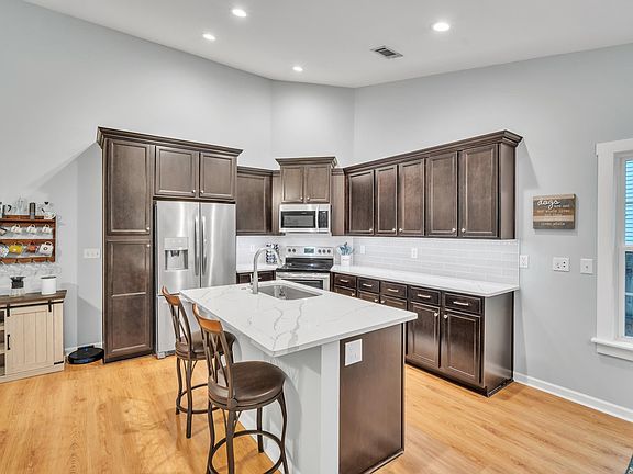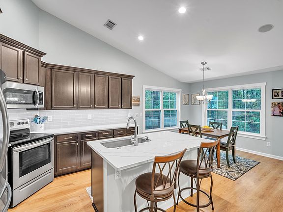 Make this house your home just in time for the holidays! This stunning FOUR-BEDROOM, two-bathroom ranch is conveniently located just minutes from all the shopping and dining options Simpsonville has! As you step through the front door, you'll be greeted by soaring ceilings and an elegant arched doorway in the foyer. The main living areas feature durable laminate flooring, while all bedrooms boast gorgeous LUXURY VINYL PLANK flooring. The open-concept design is perfect for hosting holiday gatherings, with a kitchen that showcases QUARTZ COUNTERTOPS, a MODERN BACKSPLASH, and STAINLESS STEEL APPLIANCES. Adjacent to the kitchen is the spacious great room, complete with a VAULTED CEILING, recessed lighting, and hidden TV hookups to keep cords out of sight. The split floor plan offers two bedrooms at the front of the home with a shared hall bathroom, while an additional bedroom at the back provides a versatile space for an office, playroom, or craft room. The PRIMARY SUITE is a relaxing retreat with double sinks, a walk-in shower, a large walk-in closet, and an extra closet for added storage. Unique touches include a hidden charging cabinet in the hallway for your devices. Step outside to enjoy the private, fenced backyard with a serene wooded view, perfect for BBQs or playtime with your furry friends. Neighborhood amenities include a community pool and sidewalks for leisurely strolls. Located just minutes from Target, Starbucks, restaurants, The Warehouse at Vaughns, and the interstate, this home is in a prime location! Don’t miss out—schedule your showing today!