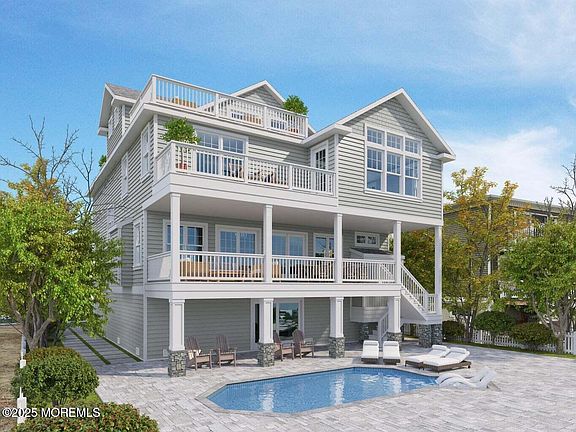 To Be Built - Custom Waterfront Shore Colonial Soon to be constructed, this custom-designed 5-bedroom, 4-full-bath waterfront Shore Colonial will offer luxury living and stunning views from nearly every room. Perfectly situated along a protected wildlife refuge with open bay access and expansive vistas, this home will be a boater's dream—just minutes from the canal, F-Cove, Tices Shoal, and all the premier destinations the Jersey Shore has to offer. The first level will feature an open-concept layout with a spacious living room centered around a gas fireplace, a custom kitchen with a center island, a generous dining area perfect for entertaining, a versatile 5th bedroom or home office, a full bath, a finished laundry room, and a massive covered porch designed to take full advantage of the water views.