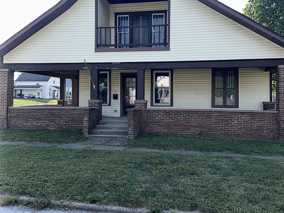 A beautiful home that has a covered front porch that wraps around to the side. This home offers a one car detached garage and large fenced in corner lot. The home has three bedrooms with one bedroom on the main floor and two bedroom upstairs with an additional space for game room or sitting area. The living room with fireplace and separate dining area. The home has a kitchen with wood cabinets. There is a full bathroom on the main floor. The full basement has laundry area.