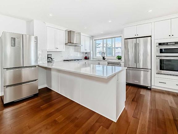Welcome to beautiful community of Mahogany, modern home in corner lot with a legal basement suite with separate side entrance. 2 storey home with 1,674 sqft of living space above ground plus 687 sqft of living space for the legal basement suite. Main floor shows 2 separate level of space which allows the living room area with high ceiling and plenty of natural lights. Kitchen offers modern look with quartz countertops and stainless steel appliances. Upper level offers master bedroom with 4pc ensuite, 2 other bedrooms, 4p bathroom and laundry room. Fully developed basement, legally permitted suite by the city allows you to have guests or additional rental income. Basement suite offers high ceiling living room, kitchen area, 1 bedroom, 1 bathroom and laundry room. Corner lot with extra space and separate side entrance for the basement suite. There are upgrades including beautiful hardwood floor, light control, energy-efficient solar panels and much more. You will enjoy active and modern living within the community with lake and beach access.