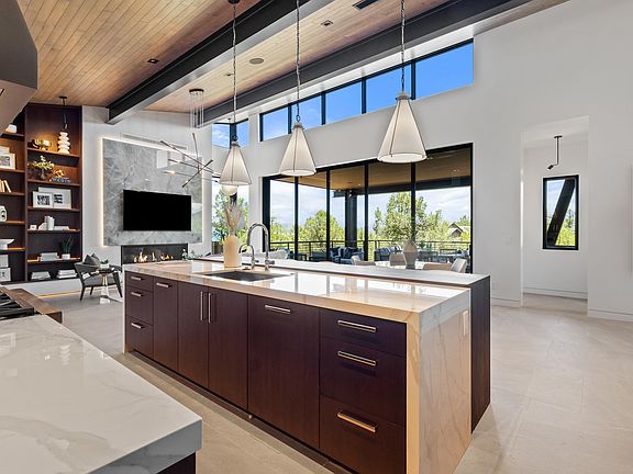 Open floor planBreathtaking mountain viewsClerestory windowsNatural lightBuilt-in coffee systemModern mountain architectureSpacious covered patio