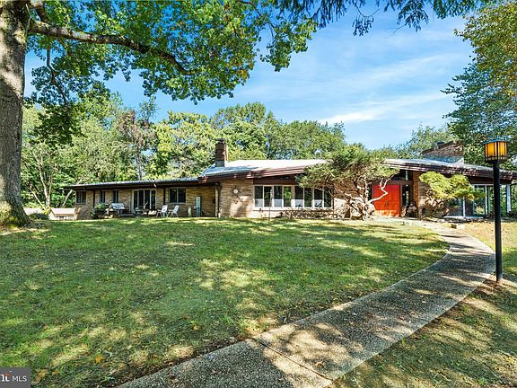 Frank Lloyd wright-inspired custom built home, this striking mid-century modern ranch sits on 4 private acres along a rarely available lane in the prestigious 19807 zip code. Offering 4 bedrooms 3.1 baths, and over 3600 square feet of thoughtfully designed living space, this residence blends architectural artistry with comfort. The formal living spaces showcase three walls of glass, a dramatic suspended wood-burning fireplace with decorative copper vent, soaring 15' beamed all wood ceilings, and rich brick accent walls. The formal dining room includes custom built-in cabinets and drawers, perfect for storage and display. The gourmet kitchen is designed for both function and gathering, featuring a center island with Jenn-Air cooktop, built-in dining area, Kitchen Aid double ovens & dishwasher, super wet bar and desk nook. The extensive custom cabinetry offers an abundance of storage options and convenience that is unparalleled. A remarkable 17' divider with pass through connects the kitchen seamlessly to the expansive family room, where a brick wall with elevated wood stove, wormwood accents and volume ceilings create a warm and inviting atmosphere. Privately tucked away, the vast primary suite offers a dressing area, double closets, full bath and direct access to the rear deck. Bedroom #2 includes a double sliding glass door to its own deck, abundant built-ins, three closets , and a private bath with walk-in shower. The two additional bedrooms share a hall bath. Additional conveniences include a laundry room with a sink, built-ins and outside access as well a stairwell to the finished lower level that expands the home's flexible living space. This lower area offers convenient access to the utilities and the huge 37' x 30' two car garage with service door and HVAC, perfect for the car enthusiast. Outdoor deck, screen porch and stone patio offer views of wide open land with a backdrop of wooded surroundings. Some major recent system upgrades include a white rolled rubber roof, Andersen thermopane windows & doors, two Carrier high efficiency propane HVAC systems with multiple zone control, Navien propane on demand Hot water heater, 400 amp electric service & Generac whole home generator. This stunning home boasts exceptional structural integrity, solid foundation built to last with a robust design that reflects the quality of DuPont engineering and awaits your stylish touch, making a perfect canvas for your creative vision. Priced attractively, this beauty offers a golden opportunity to elevate its charm and unlock its true potential. Logistally the Home is only 5 Minutes to Centerville, Greenville, Hockessin, local shopping and all major thoroughfares, what a hidden gem of a location. The Home is being sold to settle an Estate. The Home is being Sold in " As-Is, Where-Is" condition. Any inspection performed by the Buyer is for their information only, the Seller will make No Repairs.