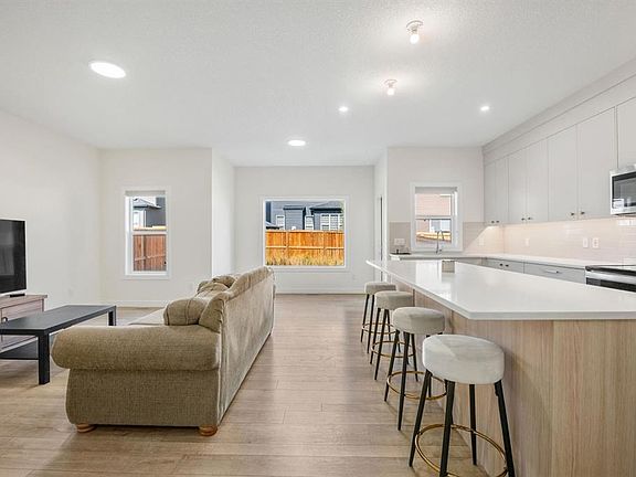 Welcome to this spacious and modern home located in the highly sought after NW community of Carrington. Boasting over 2,000sqft of developed living space, this home is designed for modern living with a smart, functional layout and impressive upgrades throughout. From the moment you enter, you’re welcomed by a bright foyer area that opens up into a bright and inviting open concept layout main floor with vinyl plank flooring throughout.The show stopping kitchen is complete with an oversized island, sleek stainless steel appliances, endless cabinets & counter space, under cabinet lighting, and a walk-through pantry perfect for keeping life organized. The kitchen flows into your spacious living and dining area, creating the ultimate hub for entertaining and family gatherings. Off to the side of the dining room is a door that leads you to your fully fenced backyard. Upstairs, the central bonus room steals the spotlight—an ideal space for movie nights, playtime, or relaxation while creating a natural separation between the primary retreat and the two additional bedrooms. The primary suite is a true retreat featuring a spa like 4 piece ensuite with a soaker tub, glass shower, and walk-in closet. Two more generous sized bedrooms, a 4 piece bath, and convenient upper floor laundry complete this level. The unfinished basement offers incredible potential with a separate side entrance, bathroom rough-in, and open layout ready for your future development—whether it’s a home gym, rec room, bedroom and additional living space. Located just steps from scenic ponds, walking paths, parks, and everyday amenities, with quick access to major routes for an easy commute—this home perfectly blends comfort, style, and convenience. Move in and start enjoying Carrington right away!