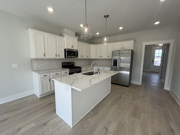 This 3-bed, 2.5-bath, 1,980 sq ft all-brick home in The Paddock at Kennesaw Farms showcases thoughtful design and modern finishes. The kitchen features quartz countertops, upgraded cabinetry, a designer tile backsplash, and stainless appliances, opening to the dining area and spacious living room with a gas fireplace. Durable laminate flooring enhances the main level, while plush carpet provides comfort upstairs and tile accents each bath. The primary suite offers a tiled shower and dual vanities, with two additional bedrooms and a full bath upstairs. A covered deck expands the living space, while neutral paint, upgraded finishes, and a 2-car front-entry garage complete the design. The Paddock provides charm, convenience to Station Camp schools, shopping, and commuter routes, plus HOA-included lawn maintenance for easy living. Ask about our builder incentives!