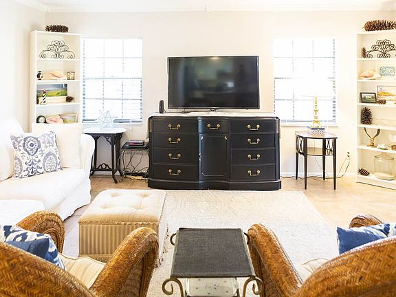 Delightful HIGH & DRY 2bd/2bth ISLAND HOME, Front Entry Courtyard, Extra large mature treed lot, Many updates including NEW ROOF, Huge all season FLORIDA ROOM, completely remodeled kitchen with all new appliances (2020) New Private fully fenced yard (2019) w/room for a pool, Oversized garage, Lower county taxes, No HOA or CDD Fees, Minutes to Beach, Downtown, Neighborhood Restaurants and Amphitheater, Simply a GREAT HOUSE!!!